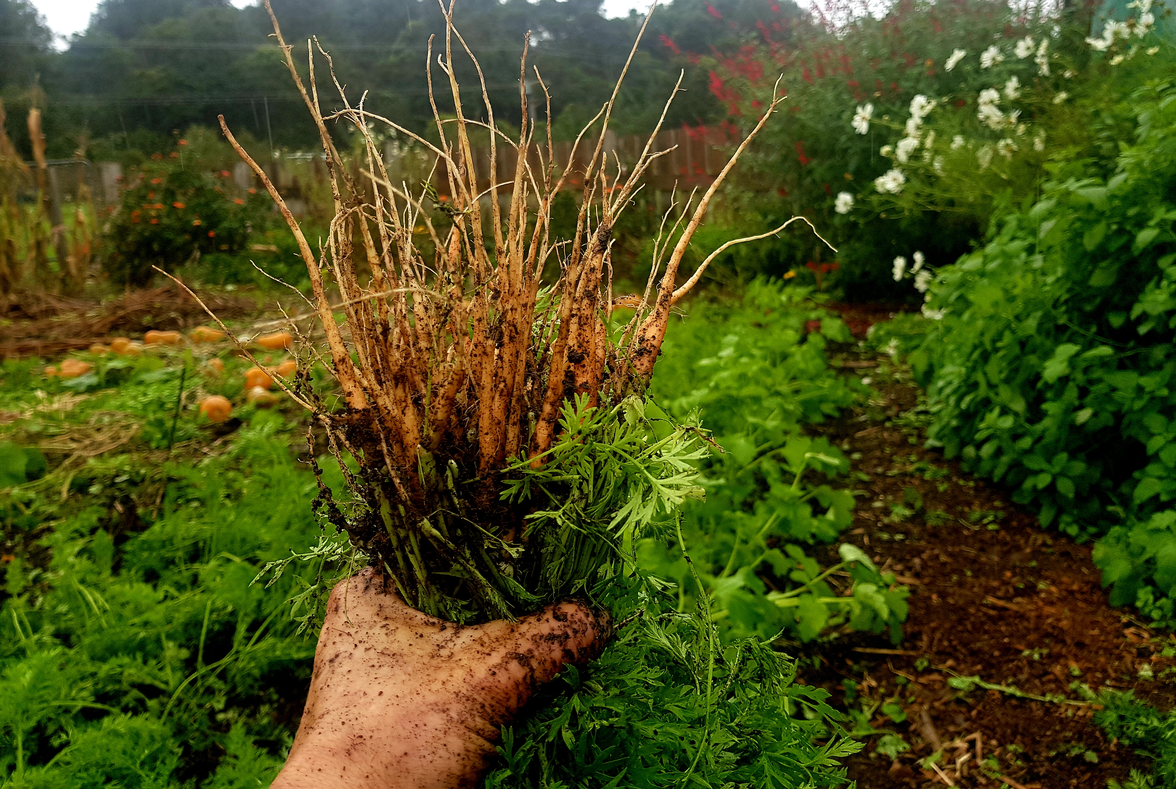 - Chop finished corn and sunflowers off at the roots. Those generous biology covered roots are such a gift to your soil. Plant around them and they'll slowly decompose adding organic matter. Roughly chop the stalks and pile them up on the edge of the vegie patch for a useful stash of organic matter in a years time. Or use them as a rough mulch beneath the avocados or citrus.