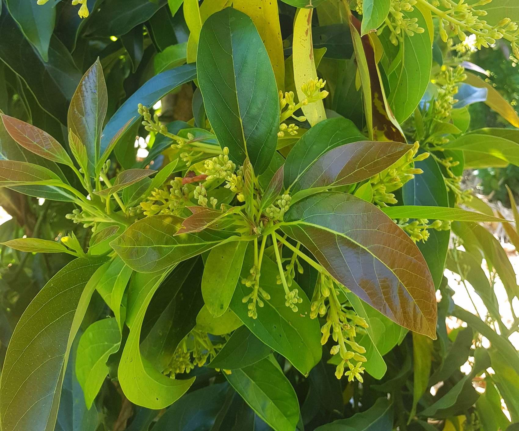 Bear in mind that avocados fruit on their new wood, so don't snip around the outside of the tree - you'll remove all the fruitful wood.