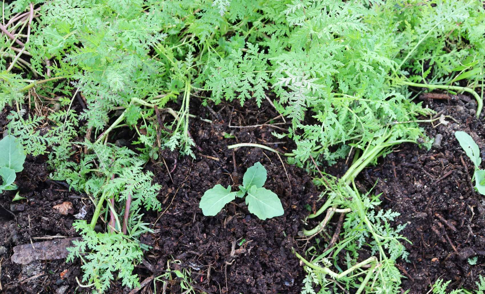 - Or sow a living mulch of low growing companions + greencrops at the base of your seedlings.