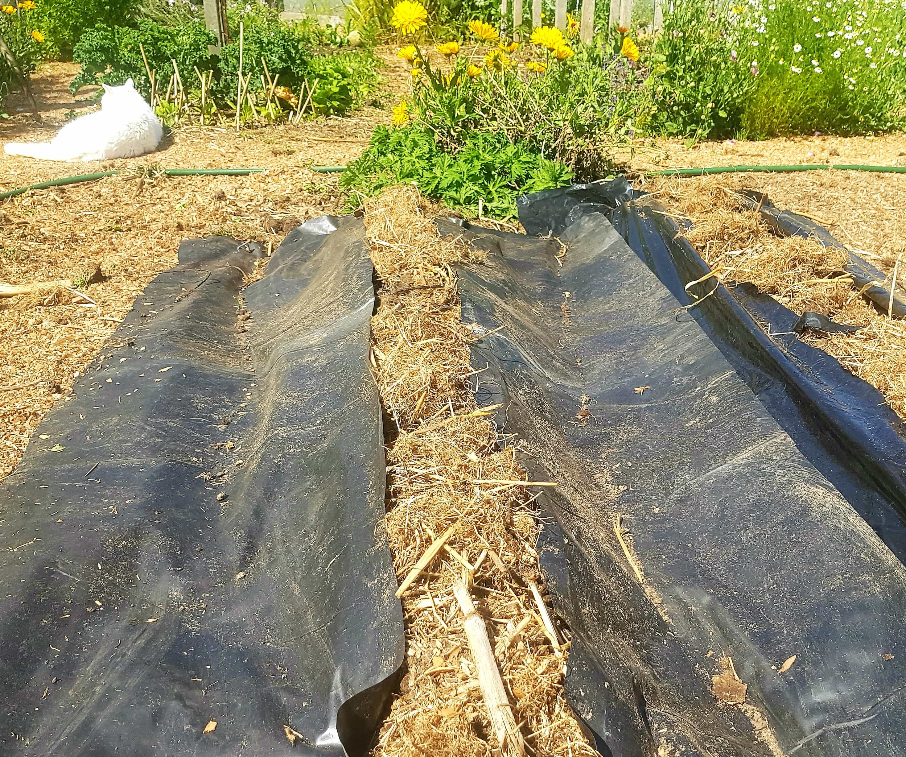 Looks ugly, but its fab! This is how I warm the soil in prep for planting kumara. Use this trick for any heat loving crop eg: pumpkin, melon or tomatoes. Lay the plastic on top of the prepared bed, slash a slit and plant through it. It's like jumping into a bed that's been pre warmed with a hottie - delicious!